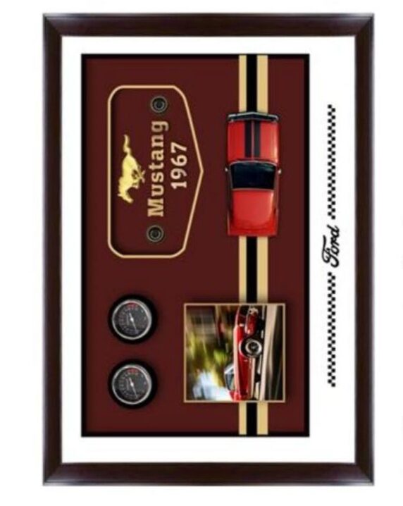 Œuvre encadrée au design vintage raffiné, mettant en scène une furie rouge et noir en relief 3D, au centre d’une composition artistique riche en détails : miniatures, accessoires, symboles et visuels 3D.